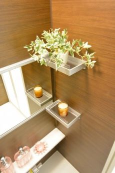 横長の鏡は奥行きを出し、お風呂をのびのび広くみせてくれる効果がありますよ(=゚ω゚)ノ