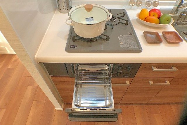 シンクとコンロの下には、引き出し収納があります。