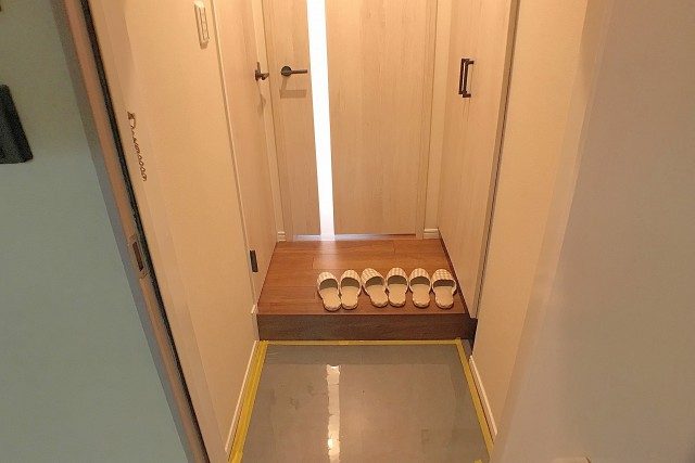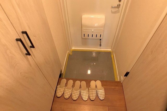 シューズボックスの下は隙間が空いているので、シューズボックスを開けたときにスリッパが押しやられることもありません c (っ・ω・)っ
