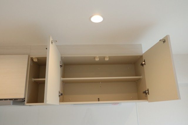 キッチン上部には、戸棚があります。収納は多めですね。