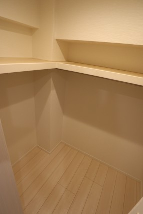 収納の棚も設置されていて、ウォシュレットも完備されています。