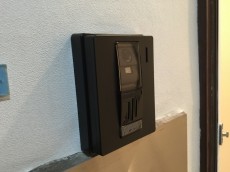 玄関ドア横にはモニター付きインターホンが設置されていて、お部屋の中から訪問者を確認する事が出来ます。返事をする前に映像でチェック出来るのは嬉しいですね。