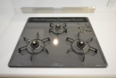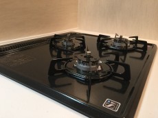 コンロは3口、グリルも付いて調理器具も充実。グリルって魚のイメージが強いですが、何を焼いても美味しくなる優れものなんですよ(^^)レシピもネット上にたくさん上がってますので、ご興味のある方は是非一度調べてみて下さい。