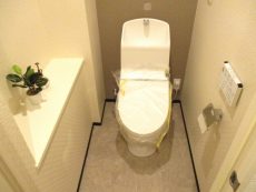 トイレは洗浄便座付き。INAX製のシャワートイレです。横には大きめのカウンターがあり、何かを飾ったり、トイレットペーパーなどをストックしたりなどいろいろな使い方が出来そうです。