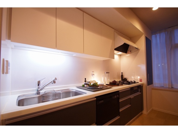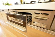 キッチンは半独立タイプ。扉こそありませんがLDとは分離された約3.6帖の空間です。最近ではカウンターキッチンなどLDとの一体感を大事にしたキッチンが人気ですが、お料理好きの方の中には独立型を支持する方も多いとか。集中出来るところがいいそうです。食器洗浄乾燥機付き♬