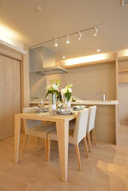 LD部分には床暖房が設置されているので、エアコン暖房が苦手な方でも寒い季節を快適に過ごせますよ。次は右奥のキッチンへ行ってみましょう。