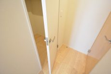 ドア近くの引き戸の奥は、クローゼットになっていました。ハンガーパイプがL字型に設置されていて、ウォークインクローゼットと言っても許されるような気が…(^^)