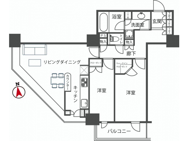 間取りのご紹介です。2LDK、専有面積は83.69㎡。