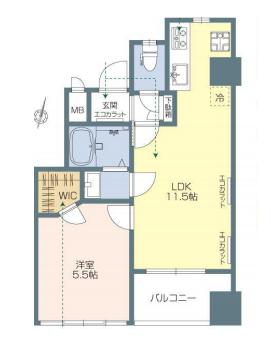 LDKは約11.5帖。家具の配置がしやすい縦長空間です。