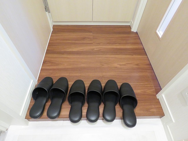玄関扉をあけた正面の壁面には調湿・消臭効果のあるエコカラットがついています。