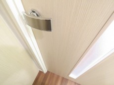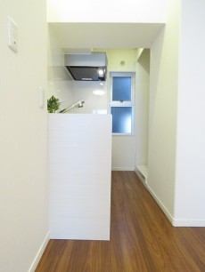 玄関をあがると小さな廊下があり、トイレ、シューズBOX、LDKの扉がぐるりと並んでいます。