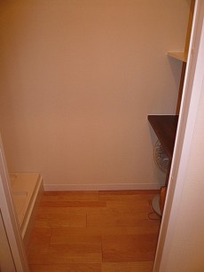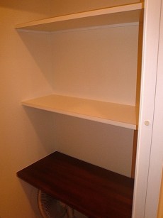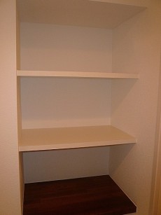 洗濯機置き場と向かい合って収納棚があります。毎日生活で使う掃除機などをポンと置ける収納場所に良いですね。生活に必要な収納場所がこんなにゆとりあるスペースを確保できマルチに活用できたら良いですね!