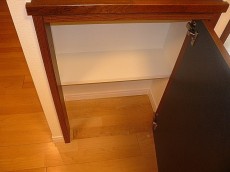 こちらは電話台です。下には扉付きの収納!文房具など細かいものの収納場所に良さそうです。