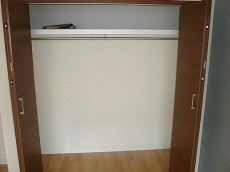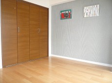 収納もたっぷりとあるクローゼット付き、絵を飾っている壁のクロスがこちらもオシャレですね。