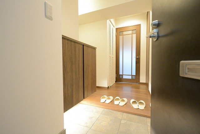 玄関のドアは内側に開くタイプです。