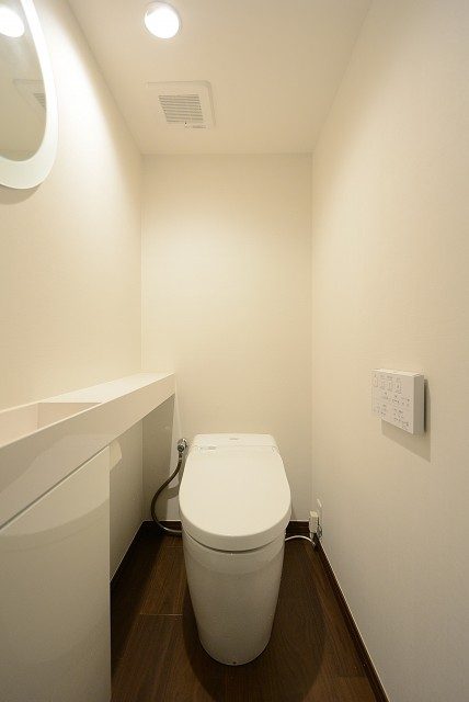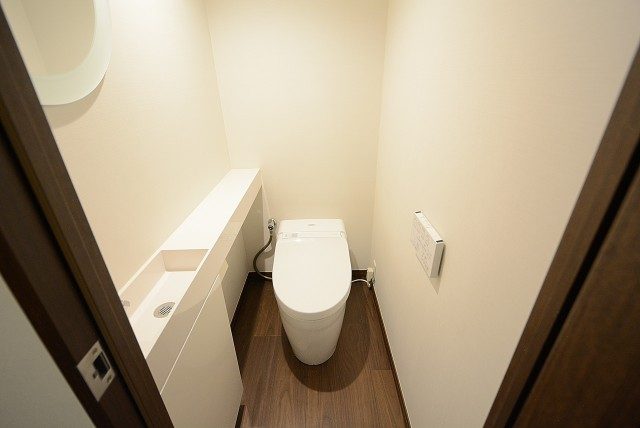 ウォシュレットが付いているのは嬉しいです。最近では付いていて当たり前の機能になりつつありますが、目視で確認出来た時はやはりテンションが上がりますね!!
