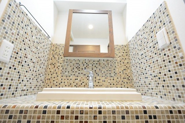 モザイク調のタイルがオシャレ感を一層引き立てています。