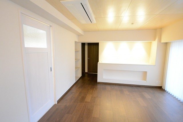 カウンターの横には収納、エアコンはビルドインタイプですヾ(゚ ▽゚*)