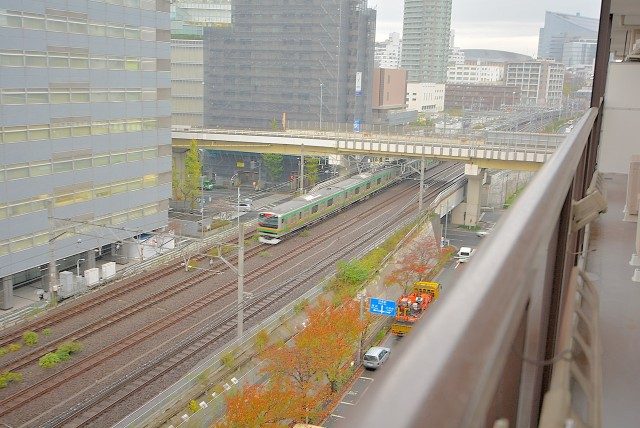 線路がみえますが、二重サッシで防犯にも安心です。今すぐにでもスタートできる家具付きのマンションです。