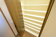 細かな棚が付いているので、そのままシューズボックスとしても使えますし、棚の高さを調節すれば通常の収納スペースとして季節ものの家電や掃除機なんかも入れておく事が出来ます。