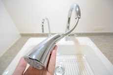 グースネックと呼ばれているシャレオツな水栓はシャワーヘッドにもなっています。