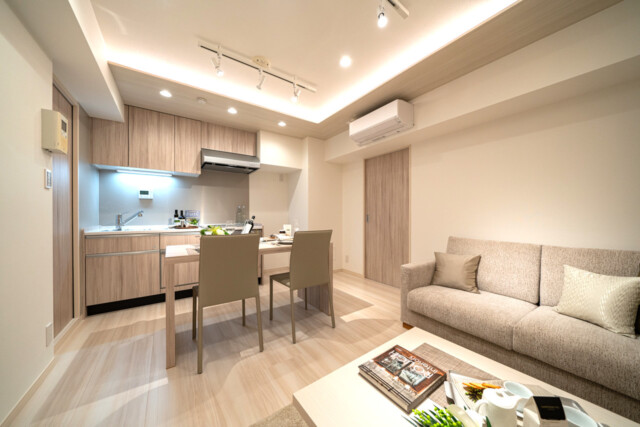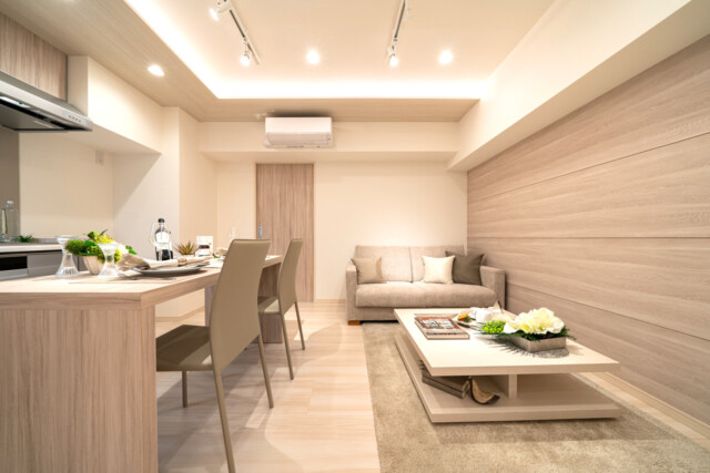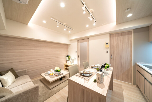壁のクロスと照明がマッチしていて落ち着くLDになりそうです。