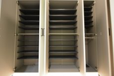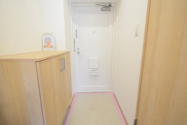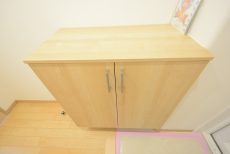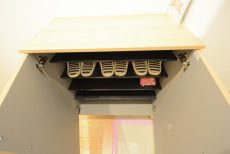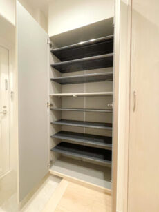 右手には大きなシューズボックスがあります。中の棚は高さの調節ができるので、背の高い履物などもラクラク収納することができますよ!!