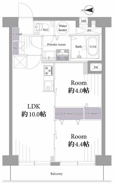 間取りのご紹介です。2LDK、44.33㎡。6階。