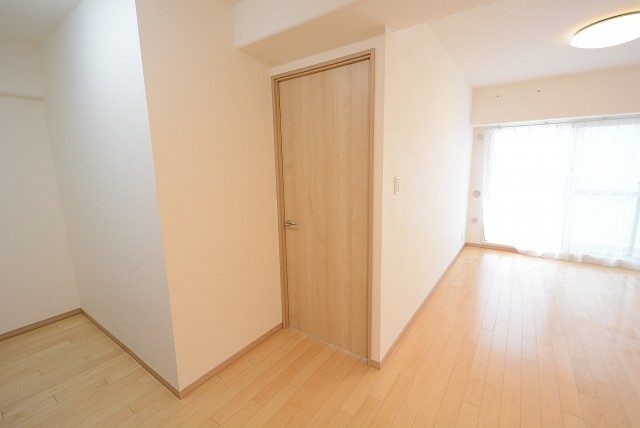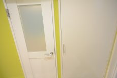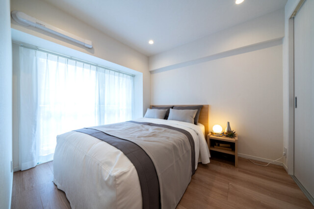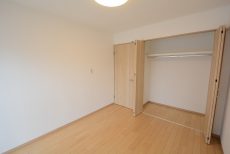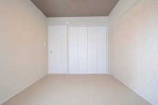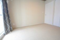 LDKと同じ西向きバルコニーに面したお部屋です。大きなウォークインクローゼットが付いていますので、外に収納家具を置く必要はありません。入口が引き戸なのも、ドアの開け閉めのためのスペースが要らず、お部屋を広く使えることに役立っています。