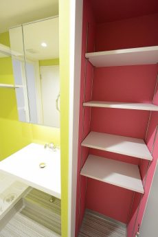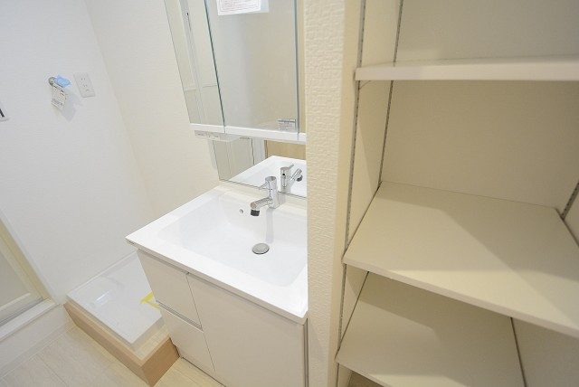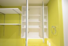 洗面化粧台の横にある棚とは別に、内部にも収納スペースが用意されています。