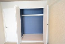 と言っても、ご覧の通り立派に洋室として使えるお部屋です。窓はありませんが暗くて静かで寝室にはピッタリだと思いますよ。クローゼットはオープンタイプ。