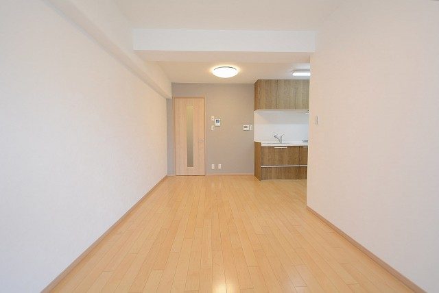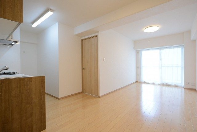 西向きのバルコニーに面したお部屋です。長方形でキッチン、ダイニング、リビングと使うオーソドックスなレイアウト。