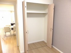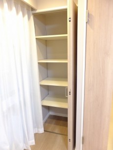 ドアを開けてすぐ右側には収納棚が付いていました。可動式の棚なので、背の高い荷物もこちらにスッキリしまえますね♪