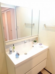 真っ白な洗面台は、つるんとした継ぎ目のないボウルなのでお掃除がラクチン☆
