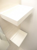 洗面化粧台は3面鏡の裏が一面収納になっており、ゴチャゴチャしがちな水まわりの小物もスッキリ整理整頓いただけます。