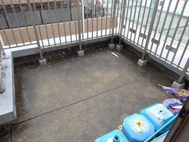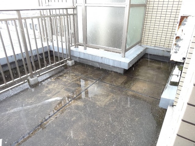 北向きのルーフバルコニー。あまりの吹雪で眺望が撮れませんでしたが・・・チラッと見たところリビング側のルーフバルコニー同様、眺めはよさそうです。