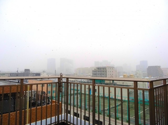 雪が舞っていて、風景がかすんでいますが・・・。目の前に高い建物もなく、眺めはよさそう!晴れた日には陽当たりも期待できるのではないでしょうか。