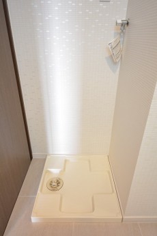 洗面化粧台の真後ろは洗濯機置場。