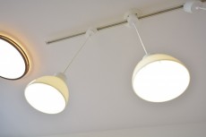 リビングの壁にはエコカラット、上にはライティングレールが取り付けられています。