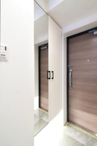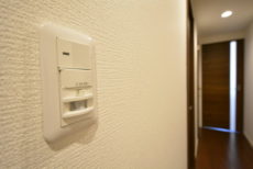 玄関には収納力のあるトールタイプのシューズボックスを設置。扉に付けられた姿見も毎朝のお出かけの際に重宝しそうですね。夜帰って来た時に活躍してくれそうなのは人感センサー!自動的にライトを点けてくれるので、いつでも明るい玄関が迎えてくれますよ。