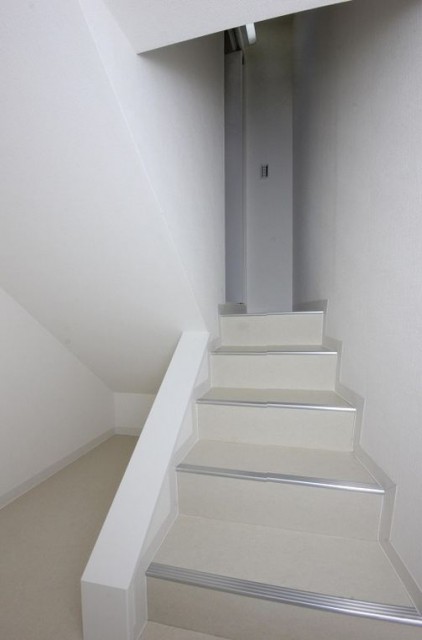 6階は玄関の他に収納部屋があります。階段を上ってすぐ、下に降りる階段があり、そこが収納スペースになっています。これだけあると、自転車までしまえそう!(^^)!