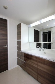 洗面台とバスルームのパネルが統一感があってとってもオサレです(*^。^*)