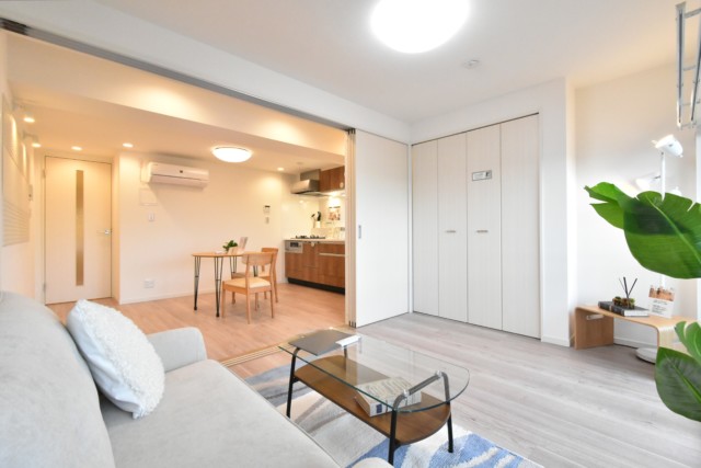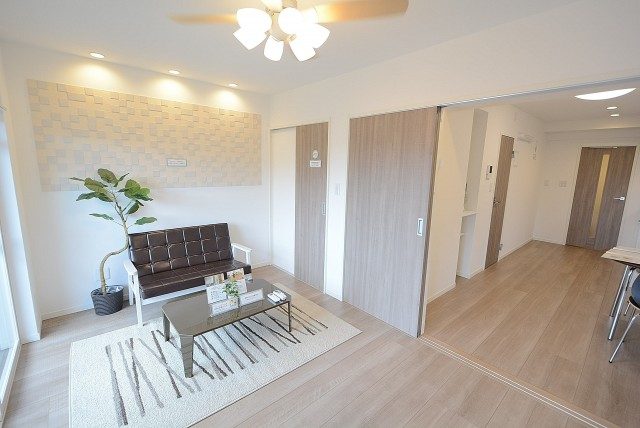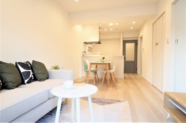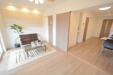 ■その他・・・フローリング貼替、建具・玄関収納交換、壁・天井クロス貼替、フロアタイル貼替、クッションフロア貼替、給湯器交換、エアコン(1基)、カラーTVモニター付きインターホン、新規照明器具取付、収納棚新設、スイッチ・コンセント交換、ハウスクリーニング
