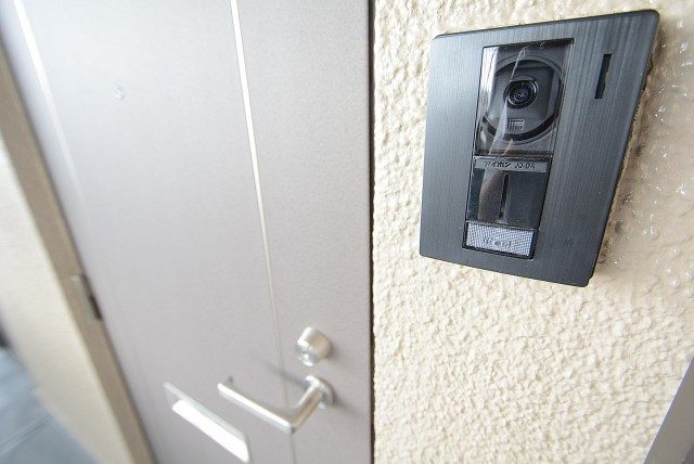 ドアの前にはカメラ付きのインターフォンが付いています。