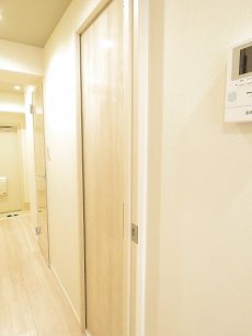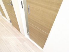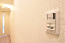 玄関ドア横にはテレビモニター付きインターホンが設置されていて、お部屋の中から訪問者を確認する事が出来ます。事前にチェックすれば、しつこいセールスに悩まされる事もありませんね。