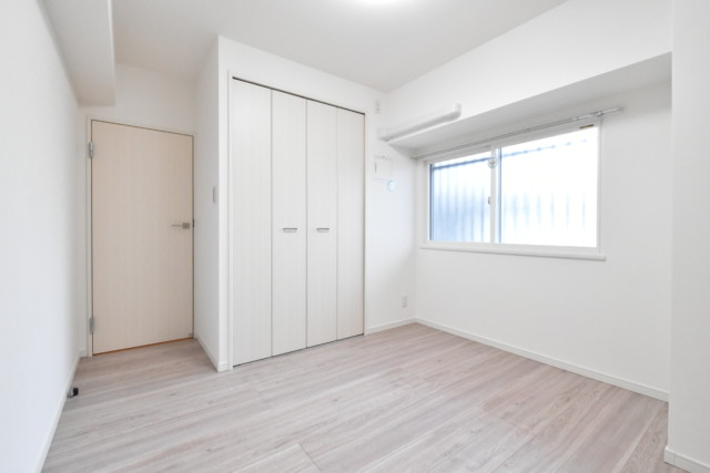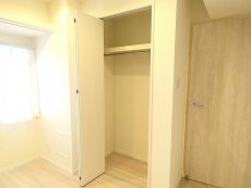 陽当たりはご覧の通り!LDKと同じく南西向きバルコニーに面したお部屋です。大きなウォークインクローゼットが設置され室内に収納家具を置く必要はありません。さらに、全ての扉をデッドスペースを作らない引き戸にすることによって、お部屋のスペースを有効に使えるようになっています。セミダブルくらいなら余裕で置けそうですよ。