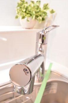洗面化粧台にはビルドインタイプの水栓が付いています。
