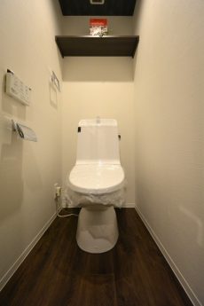 洗面室のお隣はトイレ。ウォシュレットがついています。