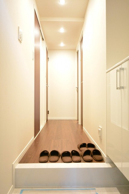 玄関を上がると目の前に廊下がまっすぐ伸びています。