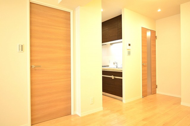 LDKの扉の並びにキッチン、洋室の扉が並んでいます。